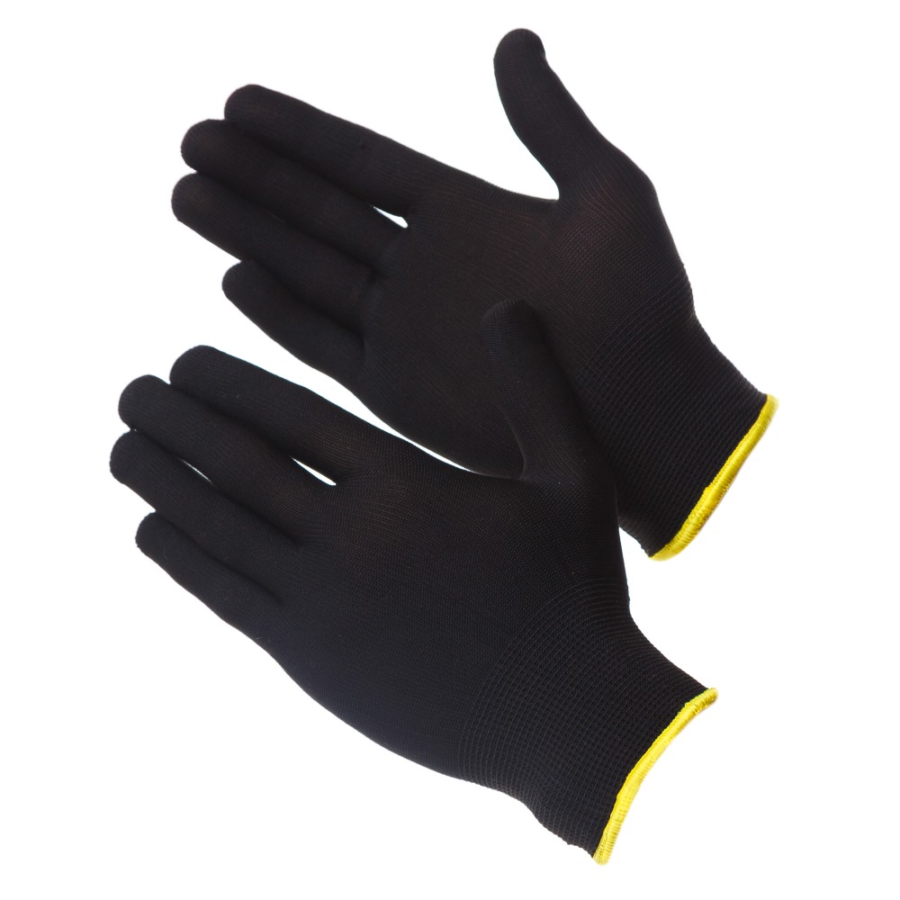 Чистые перчатки из чёрной нейлоновой пряжи. Бесшовная основа 13го класса вязки прекрасно вентилируется и не оставляет ворсинок. Универсальны, применяются для любых механических работ. Двойной оверлок с латексным кольцом обеспечивает превосходную фиксацию перчатки на запястье.Цветная индикация размера по оверлоку. Перчатки имеют допуск к пище и могут применяться на предприятиях общественного питания. Защитные свойства ТР ТС: Ми, Мп Полная длина - 21-23 см (в зависимости от размера) Вес пары - 18-21 грамм (в зависимости от размера)