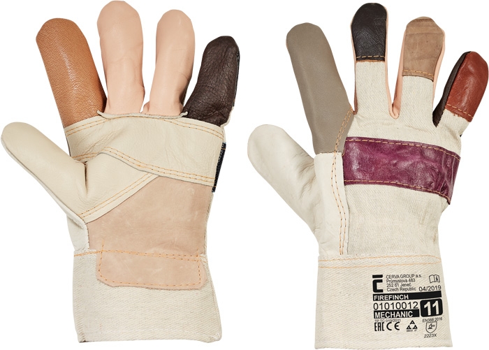 Перчатки из одноцветной коровьей мебельной кожи, с теплой подкладкой на ладони, тыльная часть и манжета сшиты из прочной хлопчатобумажной ткани.