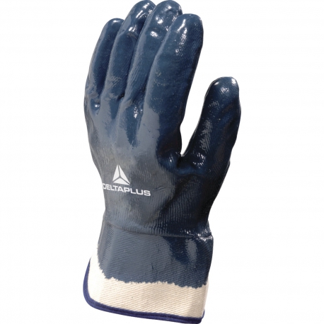 Трикотажные перчатки с нитриловым покрытием. Защитная крага длиной 6 см из плотной хлопчатобумажной ткани. Высокая устойчивость к истиранию. Устойчивость к воздействию масел. Основа: 100% хлопчатобумажный трикотаж «джерси» Покрытие: нитрил. Покрытие полное Технические характеристики EN388: 4 1 1 1 Устойчивость к истиранию – 4 (максимальная) Устойчивость к порезам бритвой – 1 Устойчивость к разрывам – 1 Устойчивость к проколам – 1